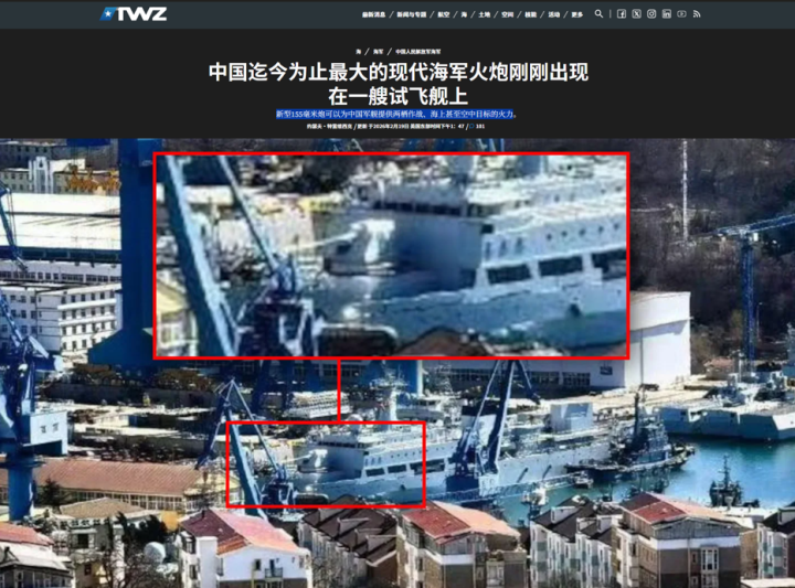 因此155毫米单管舰炮,在中文网络上曝光以后,其影响力已经快速出圈,战区军事网站于2月19日美国东部时间下午1:47(相当于北京时间2月20日凌晨2:47),对中国研制的这门155毫米舰炮予以了跟踪报道。